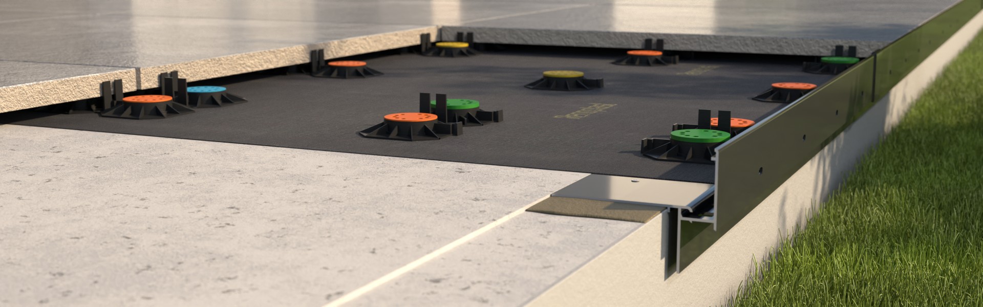 Kompleksowe rozwiązania umożliwiające wykonanie zarówno nowych, jak i renowację istniejących tarasów i balkonów w technologiach z posadzką wentylowaną, posadzką ceramiczną klejoną i posadzką żywiczną.