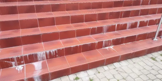 Wysolenia (wykwity solne) na schodach tarasowych z okładziną z płyt gresowych, klinkierowych lub kamiennych układanych na zaprawie klejowej
