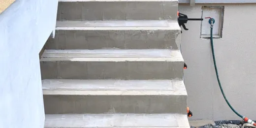 Kapilarne podciąganie wody ze schodów na taras