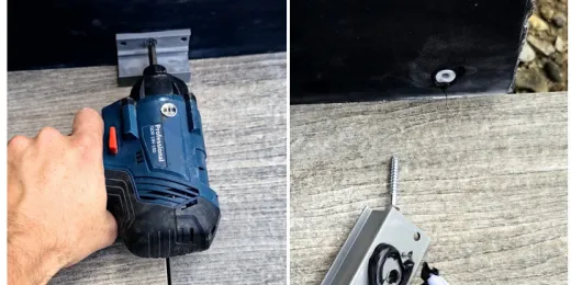 Osadzamy koszulki kołków montażowych. Na odtłuszczoną powierzchnię wspornika na jego tylnej ściance nanosimy uszczelniacz Hertalan KS96 wokół otworów montażowych fot. 37. Następnie wsporniki przykręcamy do stopnicy.