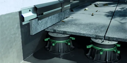 Ponadto bardzo ważnym aspektem jest sztywna budowa profili okapowych. To co jest zaletą tej technologii, czyli brak połączeń klejonych bywa jednocześnie jej wadą. Ułożone luźno wsporniki z płytami posadzkowymi w wyniku oddziaływania zmiennych temperatur przesuwają się, powodując utratę stabilności posadzki. Stabilnie zamocowane profile stanowią solidne oparcie dla posadzki, uniemożliwiając jej przesuwanie się. Istotną cechą profili okapowych powinna być ich odporność na korozję. Mocowane do zwykle wilgotnego podłoża cementowego narażone są na oddziaływanie silnego środowiska korozyjnego. Bardzo ważna jest również kompletność elementów stosowanych do wykończania okapów. Systemowe profile proste, narożniki, łączniki, odbojniki umożliwiają wykonanie szczelnego okapu bez konieczności dorabiania na budowie, zwykle nietrwałych elementów.