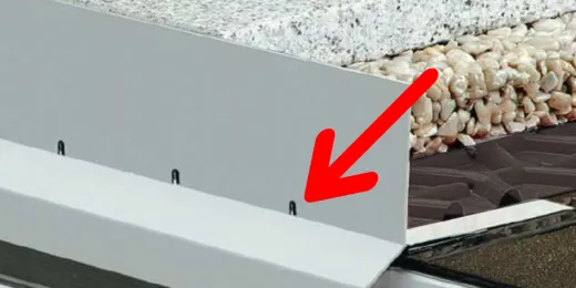 b) Zastosowanie profili okapowych posiadających zbyt małe otwory odwadniające będzie powodować ich szybkie (zanieczyszczenia) zapychanie, a co za tym idzie brak odprowadzenia wody opadowej na zewnątrz. Powoduje to spiętrzanie się wody pod posadzką i w konsekwencji przecieki pod izolację.