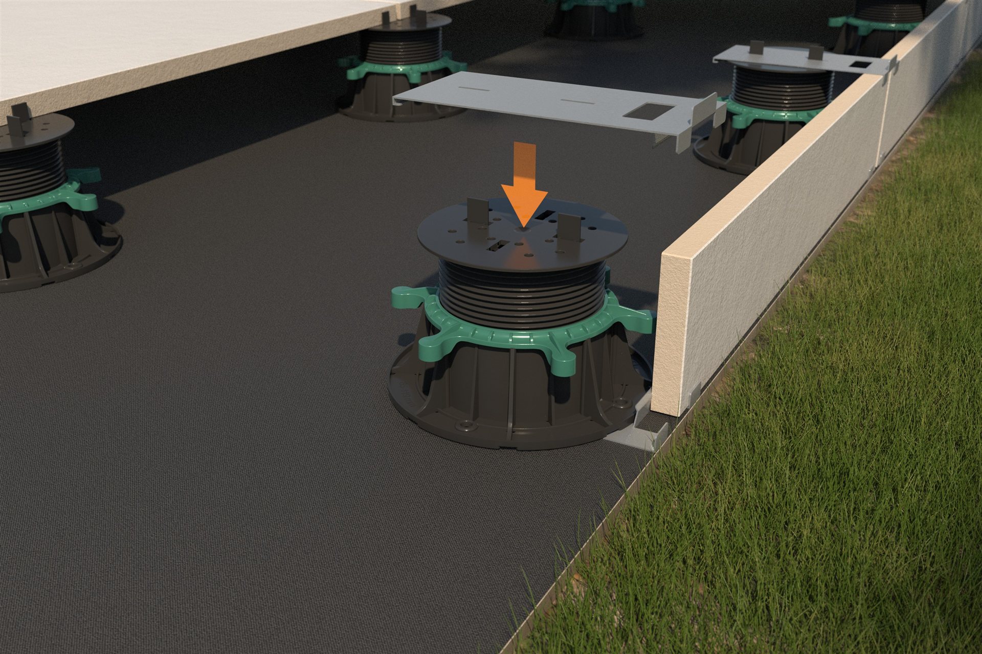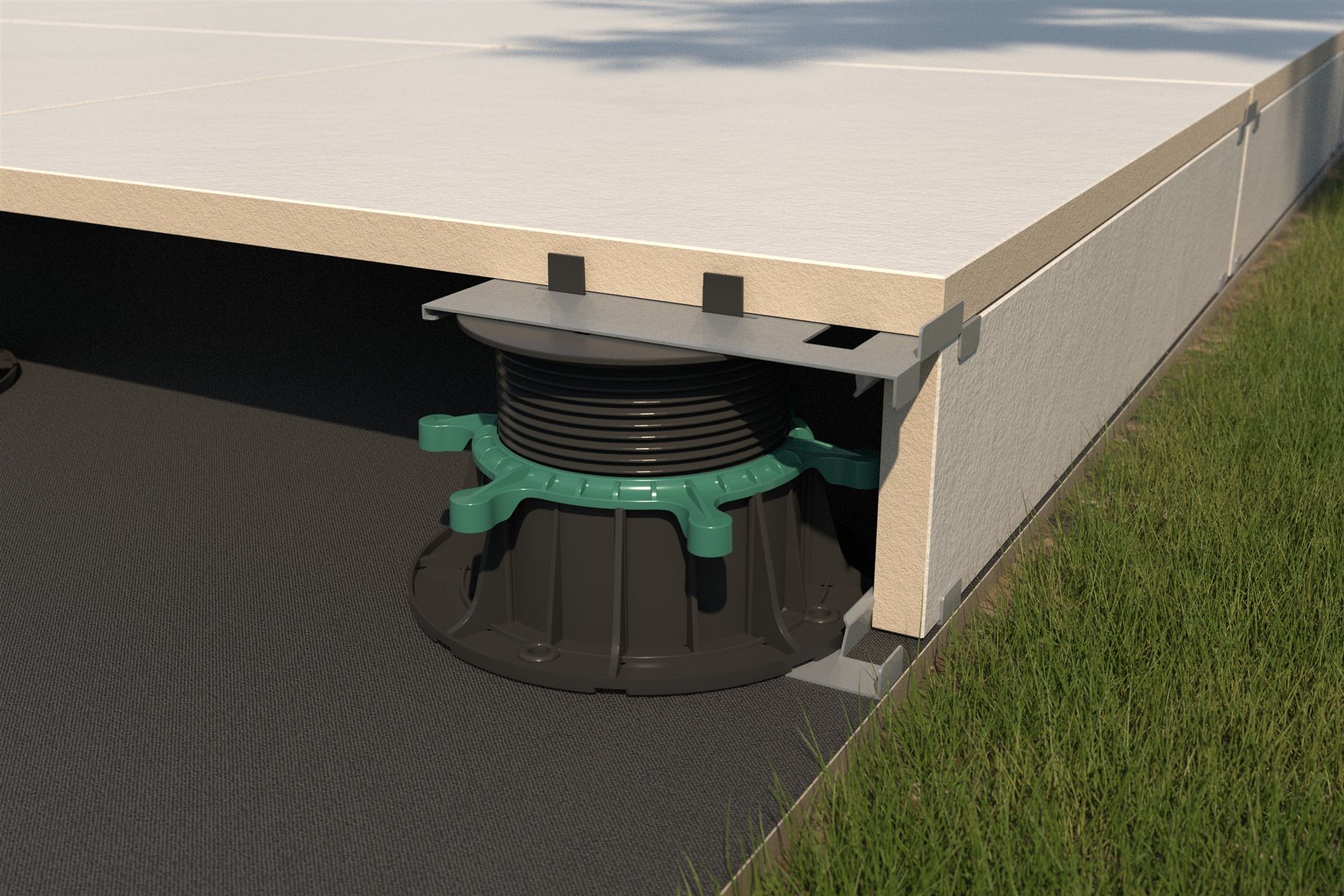 Zestaw klipsów mocujących RENOPAD PRO (górny i dolny) umożliwia zamocowanie płyt czołowych posadzki balkonu i tarasu.