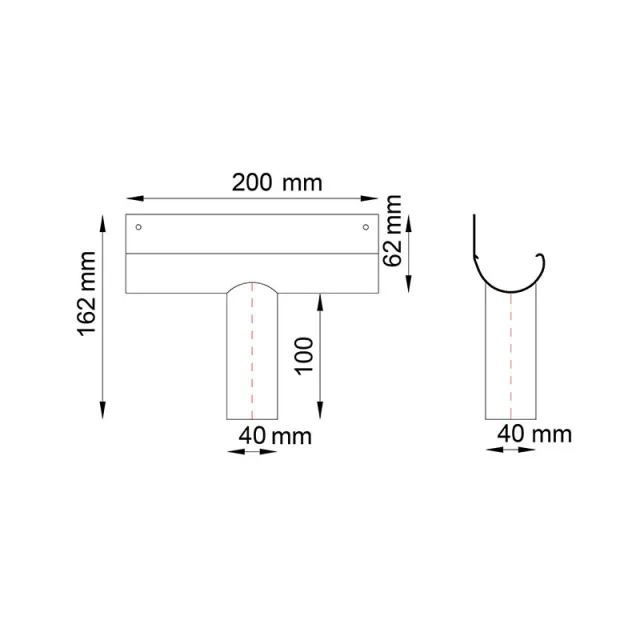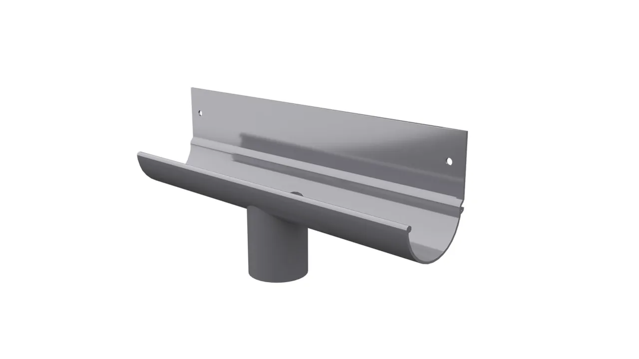 Lej spustowy R50 jest elementem systemowego odwodnienia rynną R50, który odpowiada za odprowadzenie wody z rynny do rury spustowej, a także może służyć jako połączenie między rynnami.