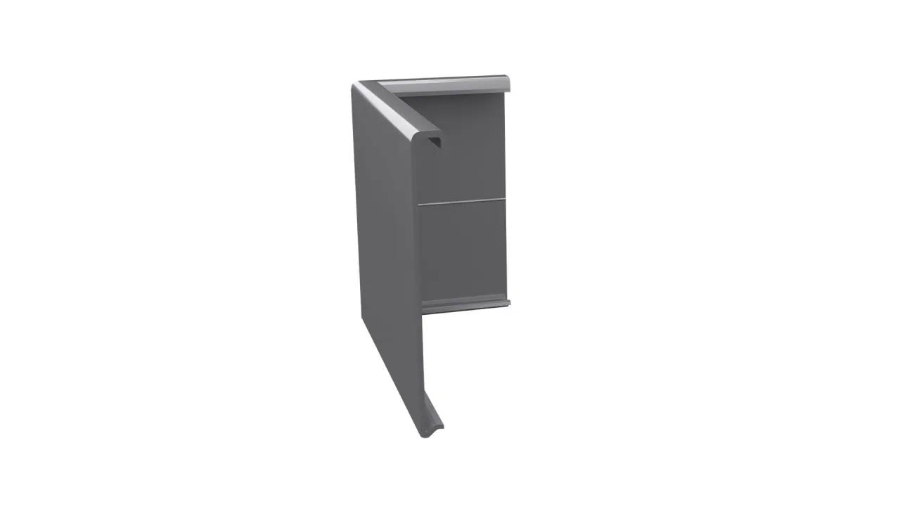 Narożnik łącznikowy W35 PLUS Lewy jest elementem systemowego wykonania okapu profilami W35 PLUS, który służy do zakończenia profili okapowych W35 PLUS w loggiach.