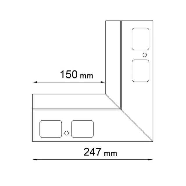 Narożnik wewnętrzny D25 90 jest elementem systemowego wykonania okapu profilami D25, który służy do wykończenia naroży wewnętrznych tarasu i balkonu o kącie 90 stopni.