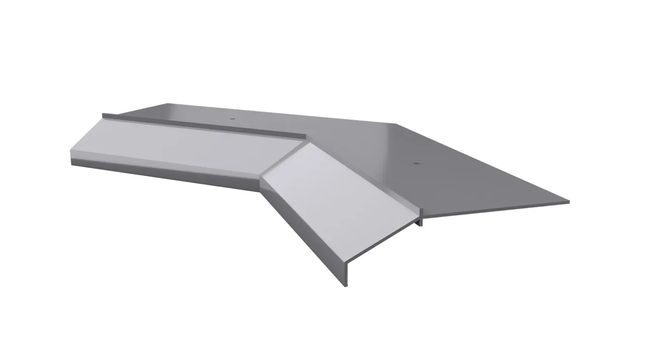 Narożnik wewnętrzny K10 135 jest elementem systemowego wykonania okapu profilami K10, który służy do wykończenia naroży wewnętrznych tarasu i balkonu o kącie 135 stopni.