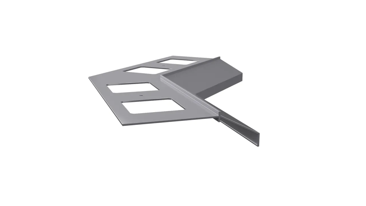 Narożnik wewnętrzny K100 135 jest elementem systemowego wykonania okapu profilami K100, który służy do wykończenia naroży wewnętrznych tarasu i balkonu o kącie 135 stopni.