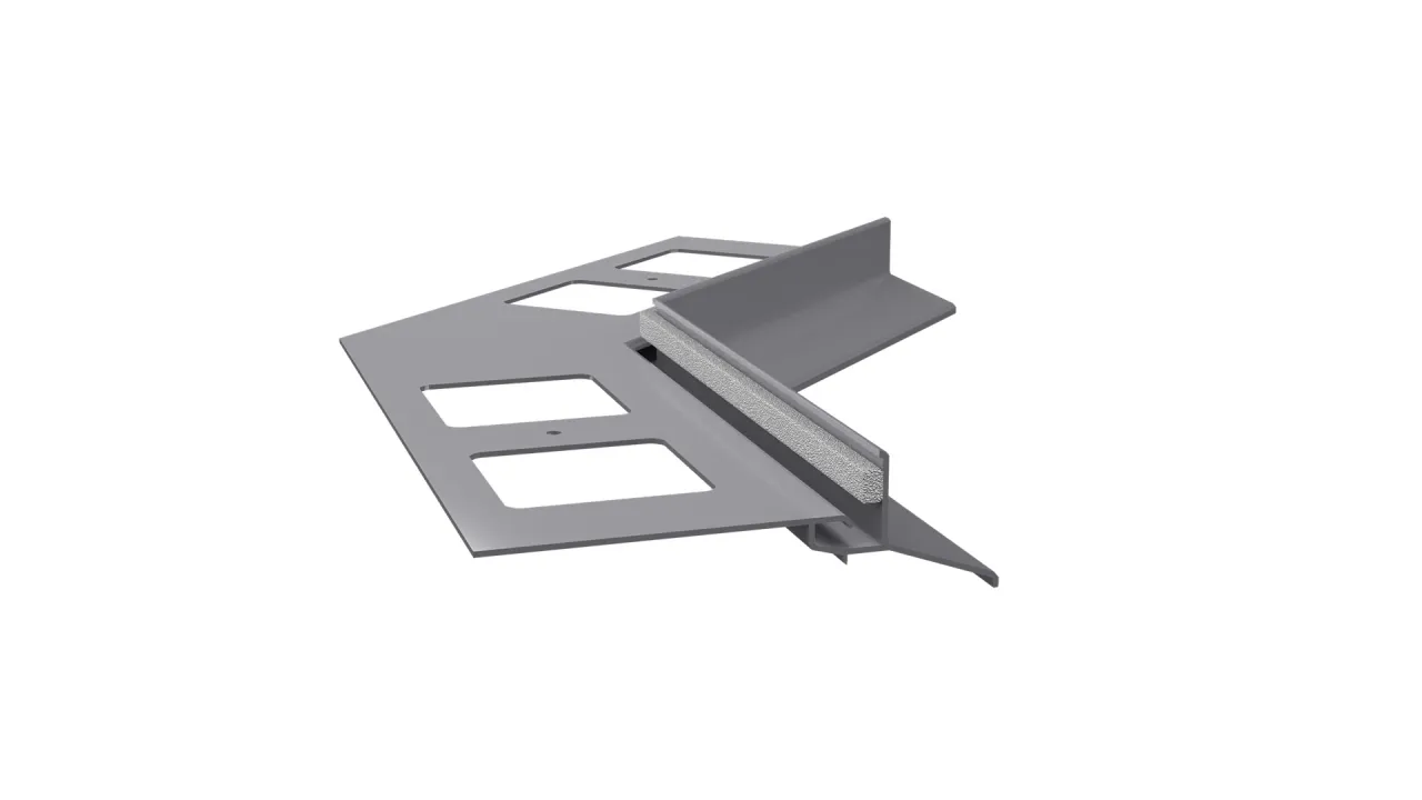 Narożnik wewnętrzny K102 135 jest elementem systemowego wykonania okapu profilami K102, który służy do wykończenia naroży wewnętrznych tarasu i balkonu o kącie 135 stopni.