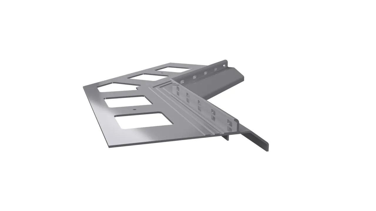 Narożnik wewnętrzny K20 135 jest elementem systemowego wykonania okapu profilami K20, który służy do wykończenia naroży wewnętrznych tarasu i balkonu o kącie 135 stopni.