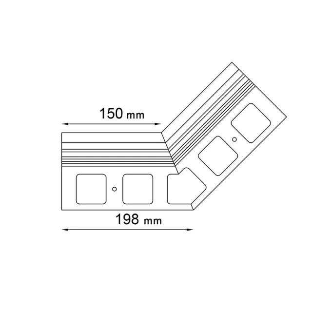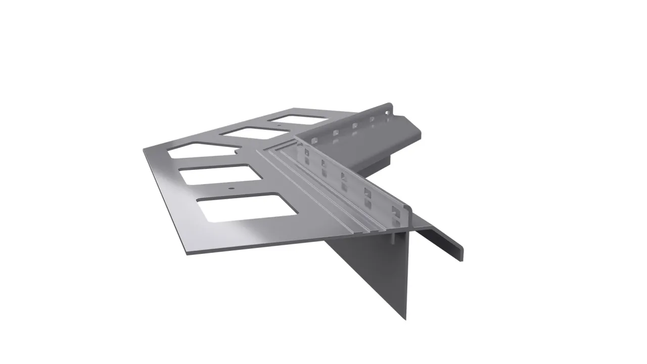 Narożnik wewnętrzny K20R 135 jest elementem systemowego wykonania okapu profilami K20R, który służy do wykończenia naroży wewnętrznych tarasu i balkonu o kącie 135 stopni.