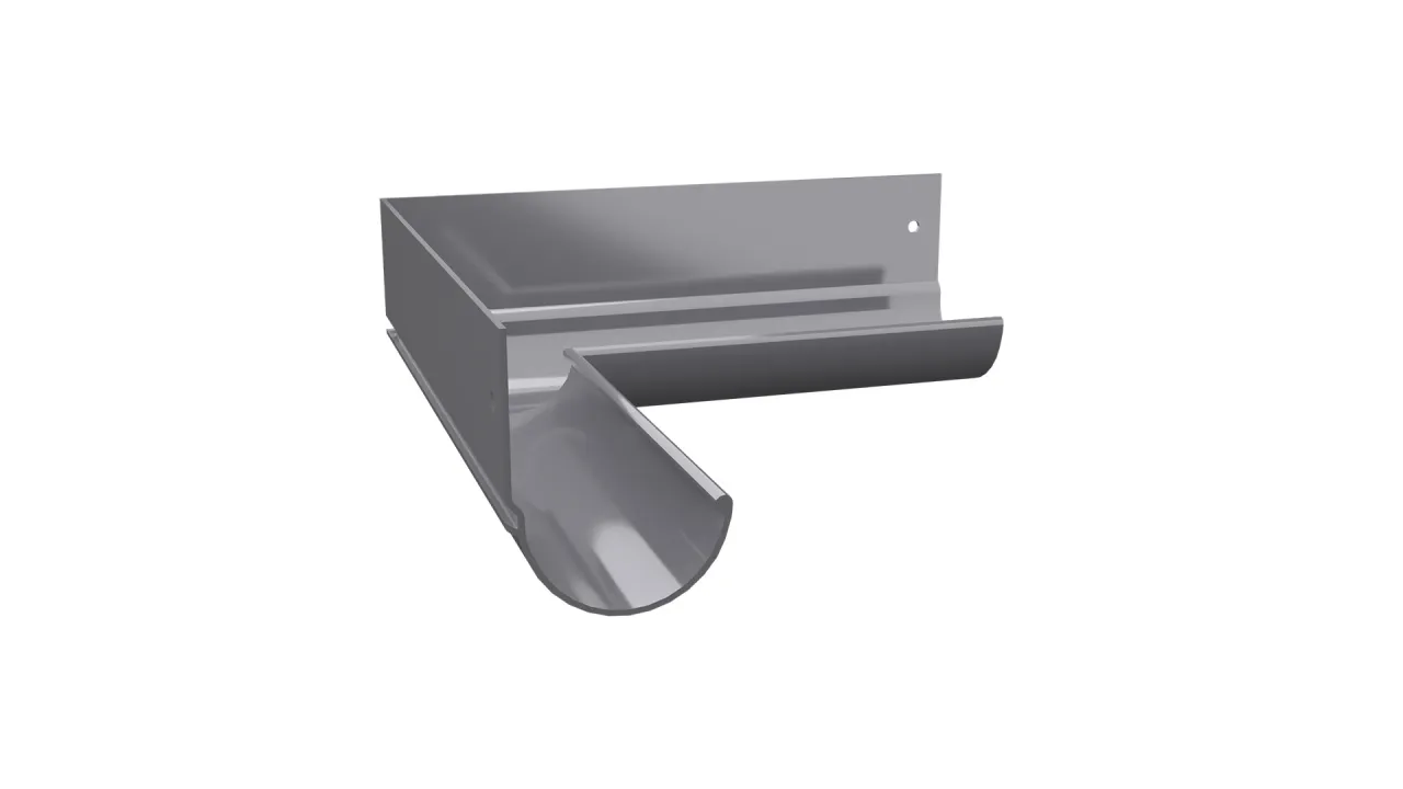 Narożnik wewnętrzny rynny R50 90 jest elementem systemowego odwodnienia rynną R50, który służy do odprowadzenia wody z naroży wewnętrznych tarasu i balkonu o kącie 90 stopni.