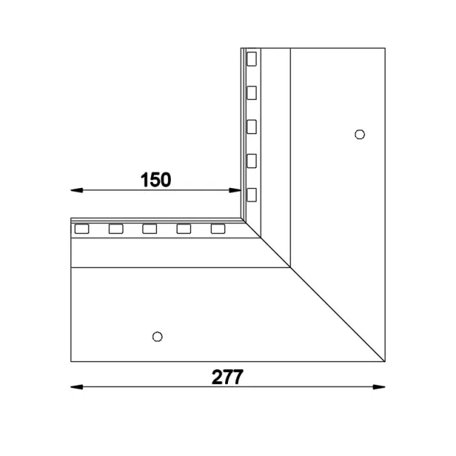 Narożnik wewnętrzny W63 90 jest elementem systemowego wykonania okapu profilami W63 i służy do wykończenia naroży wewnętrznych tarasu i balkonu o kącie 90 stopni.