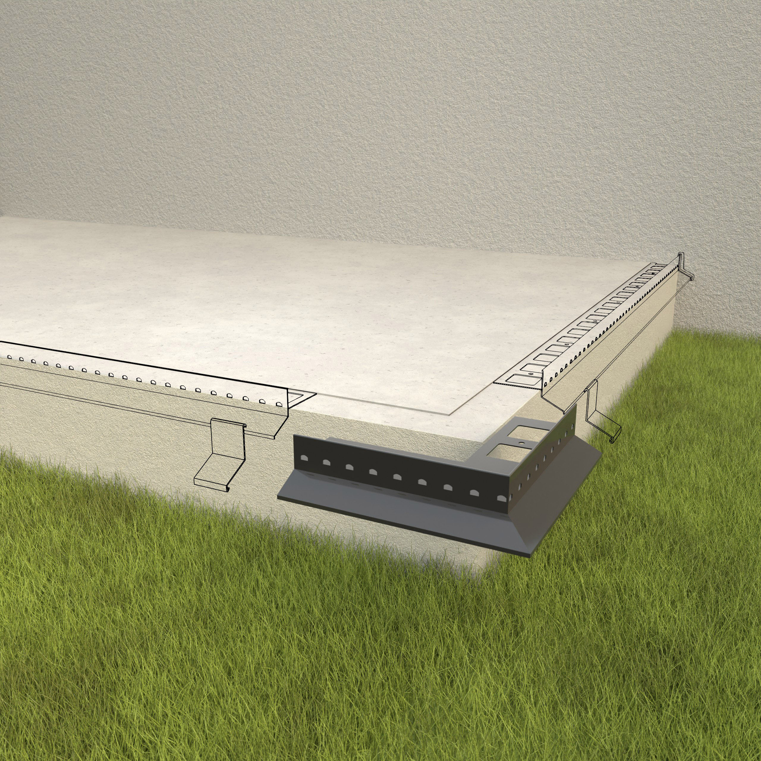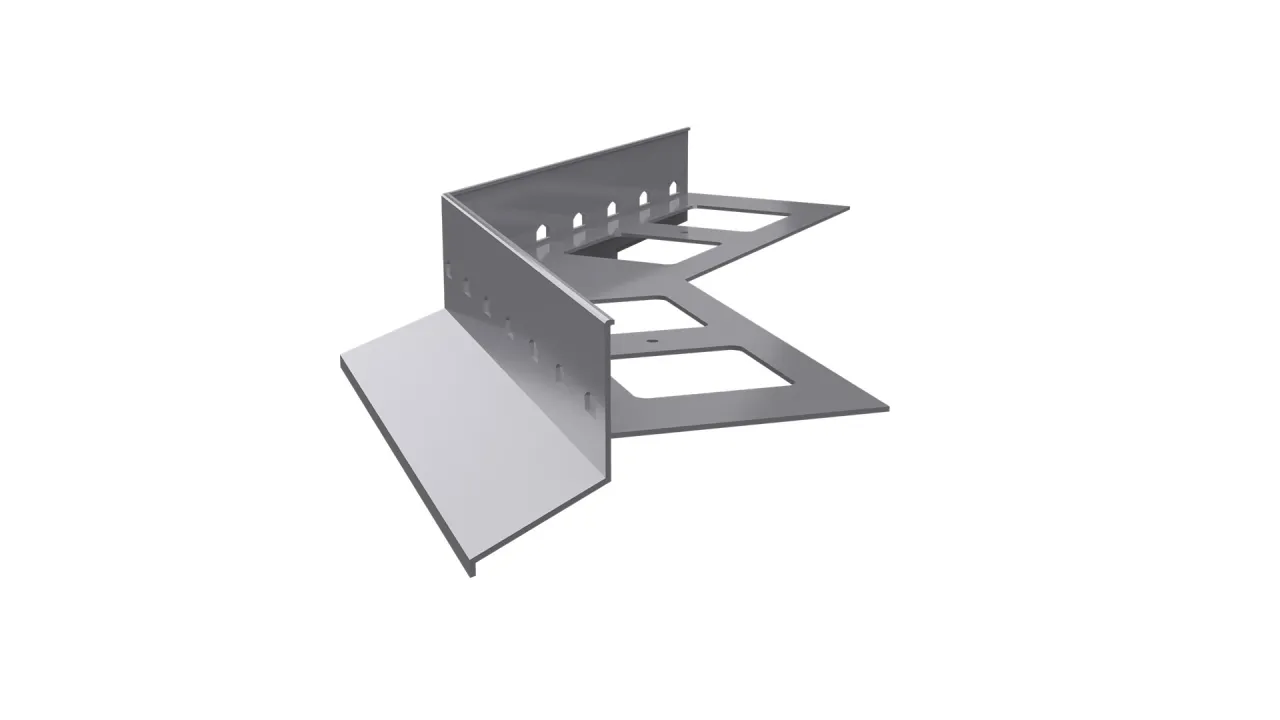 Narożnik zewnętrzny D25 135 jest elementem systemowego wykonania okapu profilami D25, który służy do wykończenia naroży zewnętrznych tarasu i balkonu o kącie 135 stopni.