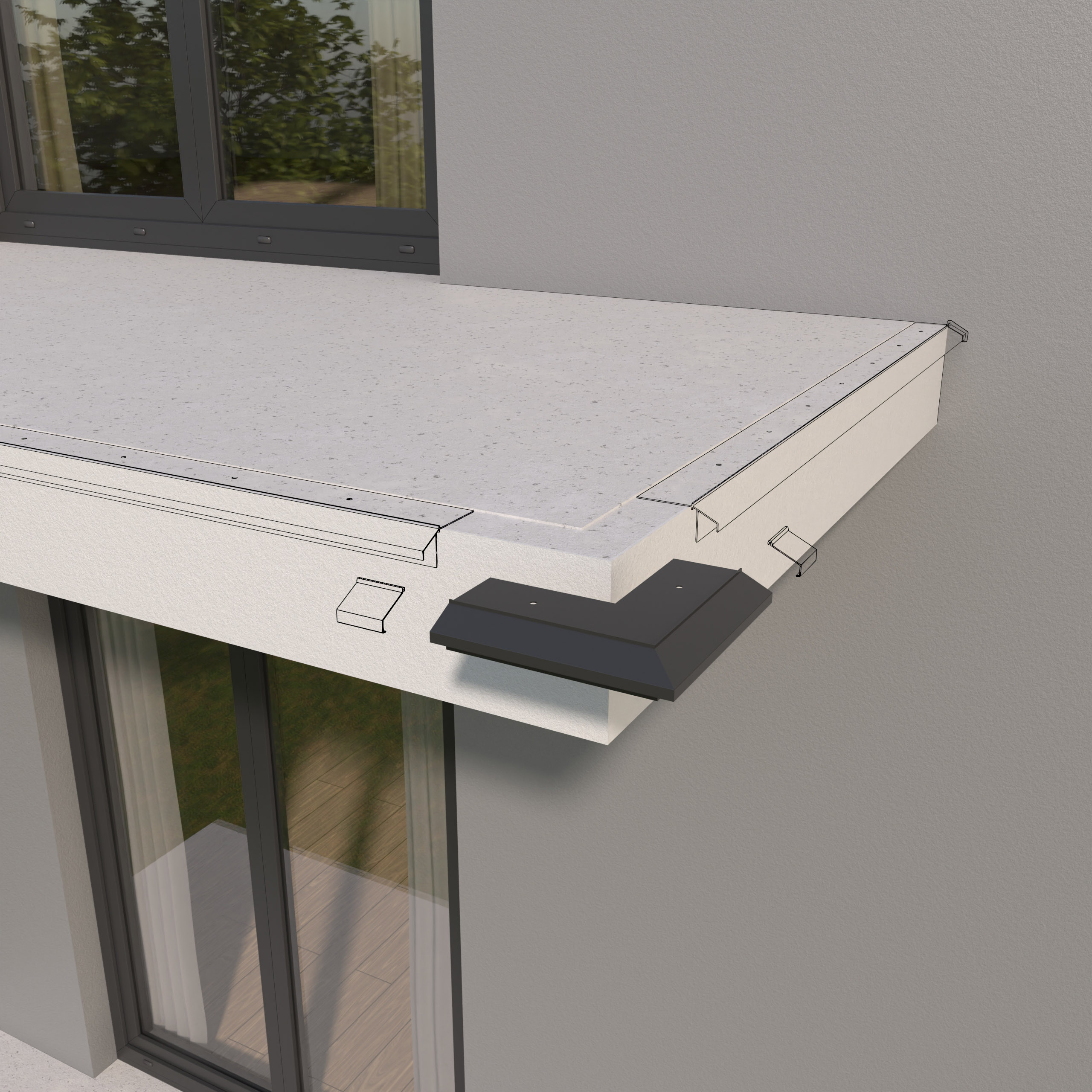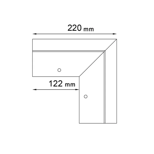 Narożnik zewnętrzny K10R 90 jest elementem systemowego wykonania okapu profilami K10R, który służy do wykończenia naroży zewnętrznych tarasu i balkonu o kącie 90 stopni.