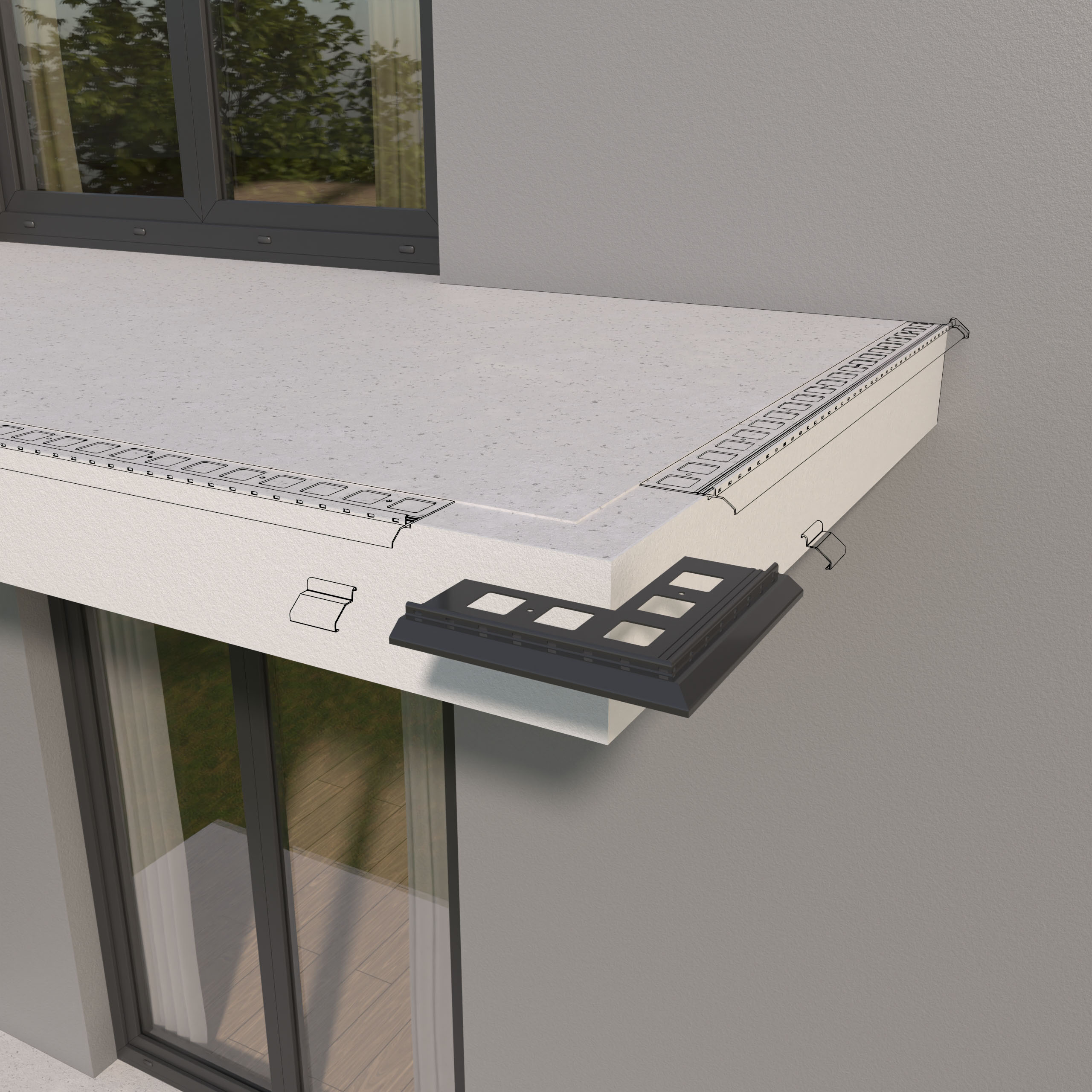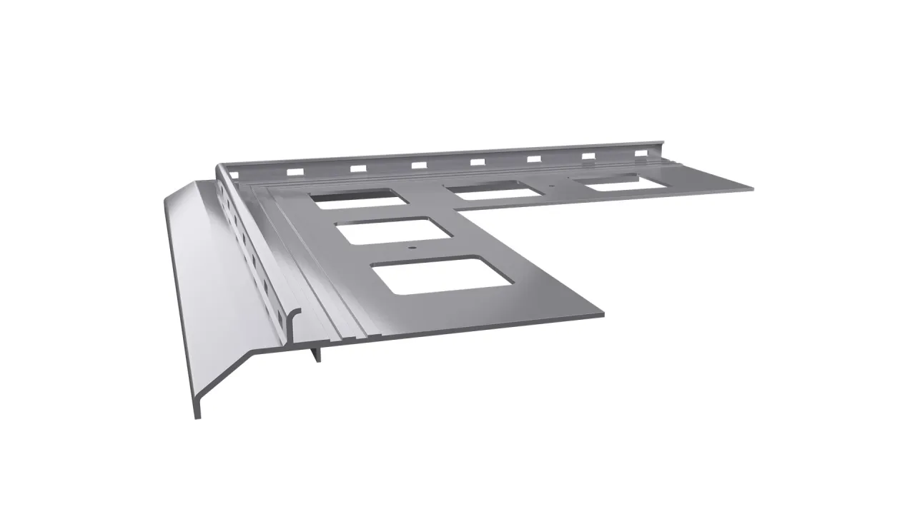 Narożnik zewnętrzny K20 90 jest elementem systemowego wykonania okapu profilami K20, który służy do wykończenia naroży zewnętrznych tarasu i balkonu o kącie 90 stopni.