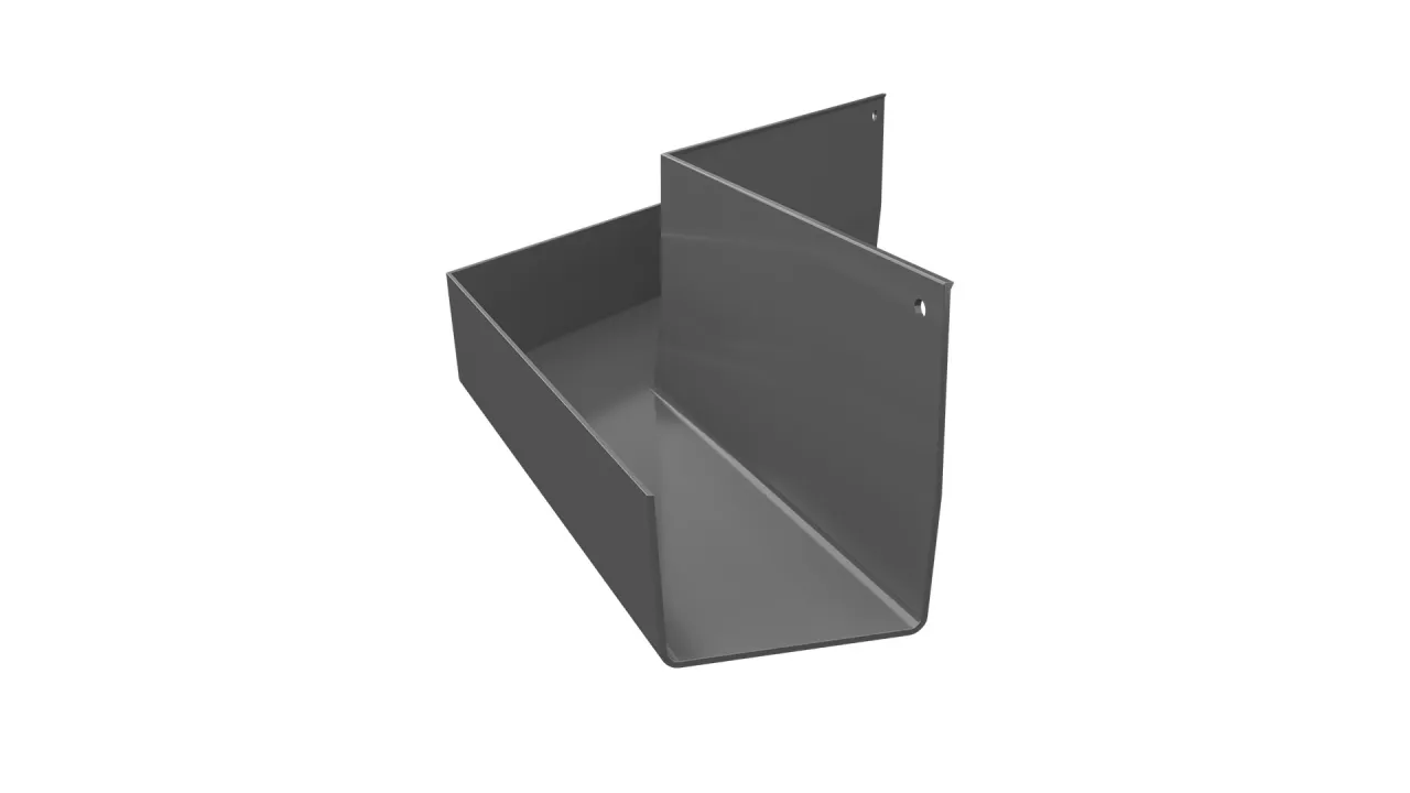 Narożnik zewnętrzny rynny RK65 135 jest elementem systemowego odwodnienia rynną RK65, który służy do odprowadzenia wody z naroży zewnętrznych tarasu i balkonu o kącie 135 stopni.