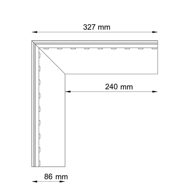 Narożnik zewnętrzny V LED 90 Ral 7024 Ral 7037 RAL 8019 Grafika Wymiary Model 3D Informacja techniczna Instrukcja montażu Opis produktu Narożnik zewnętrzny V LED o kącie 90 stopni służy do wykończenia i wzmocnienia naroży stopnic. Elementy towarzyszące Profil schodowy V LED Trzpień łączący aluminiowy V LED Zakończenia V LED P+L