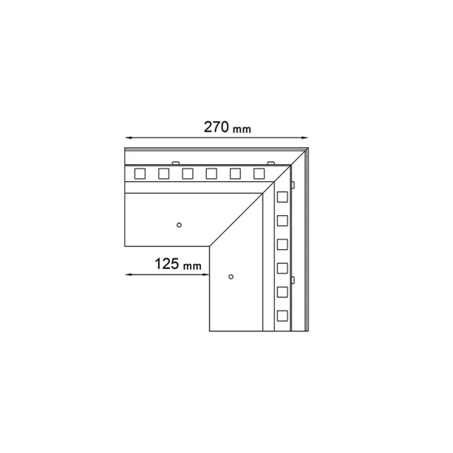 Narożnik zewnętrzny W20 90 jest elementem systemowego wykonania okapu profilami W20, który służy do wykończenia naroży zewnętrznych tarasu i balkonu o kącie 90 stopni.