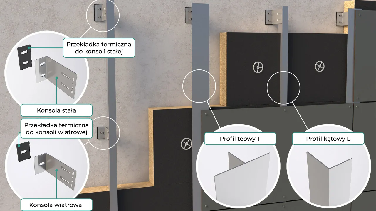 System lekkiej aluminiowej podkonstrukcji do budowy elewacji wentylowanych w tzw. technologii lekkiej suchej z okładziną z płyt włóknocementowych lub HPL. Może być stosowany zarówno wewnątrz jaki i na zewnątrz budynków.