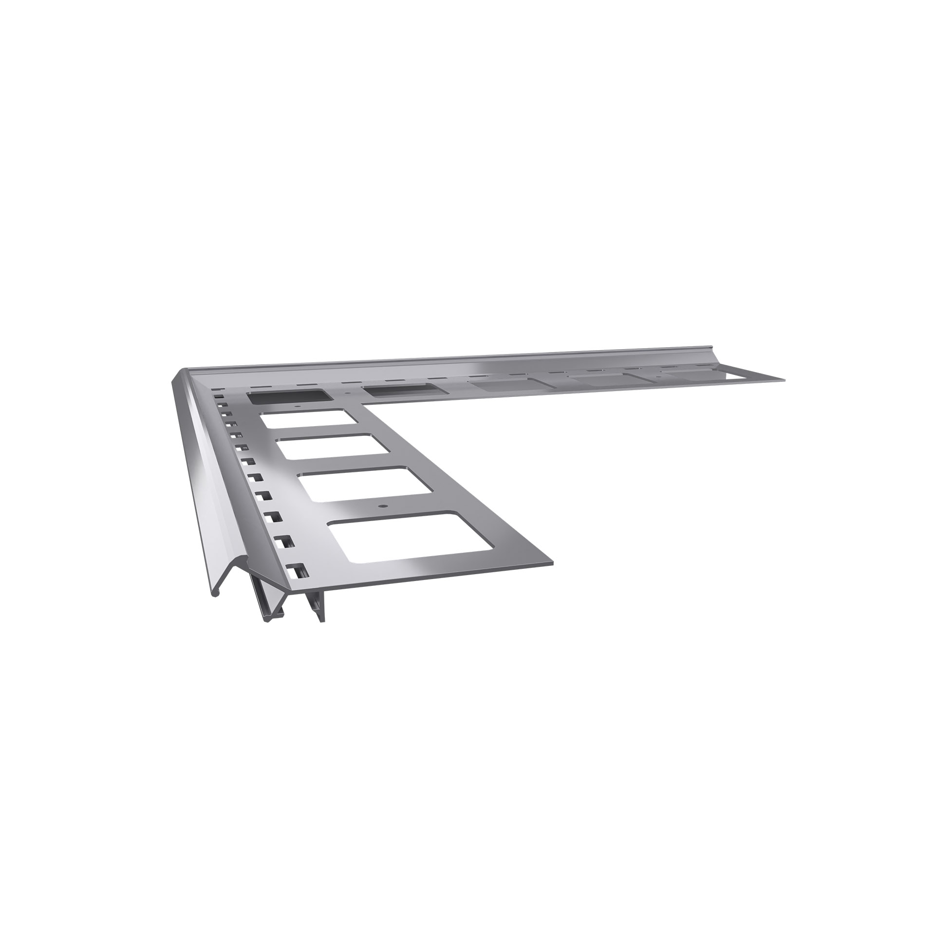 Profil schodowy V LED służy do wykończenia i wzmocnienia krawędzi schodów z okładziną wykonaną w technologii kamiennego dywanu na styku stopnicy i podstopnicy. Budowa profilu umożliwia montaż taśmy oświetlenia led.