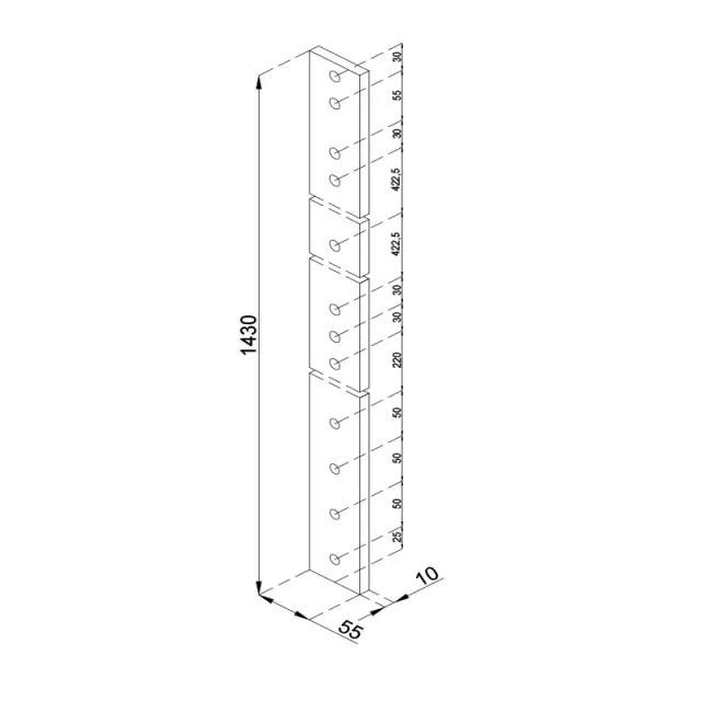 Słupek balustrady BS o długości całkowitej 1430 mm jest elementem systemu balustrad słupkowych, który składa się z dwóch aluminiowych płaskowników i stanowi główną konstrukcję balustrady.