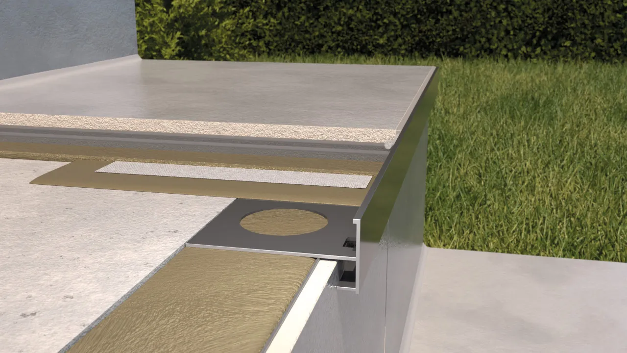 Profil SC1 został tak zaprojektowany, aby właściwie zacięty, a następnie wygięty pod wymaganym kątem w sposób ciągły wykańczał krawędzie czołowe oraz policzki stopnicy. Dodatkowo, kształt profilu i umieszczone wzdłuż otwory pozwalają na odprowadzenie wilgoci spod okładziny schodów zewnętrznych.