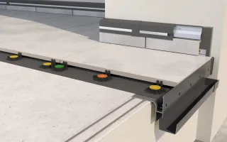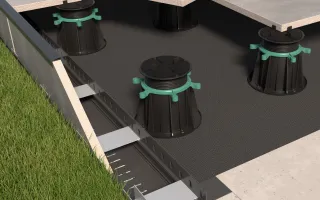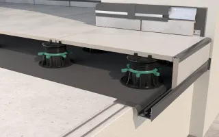 Posadzka wentylowana to ceramiczne, kamienne lub betonowe płyty posadzkowe o grubości od 2 do 6 cm, układane na wspornikach RENOPAD PRO o zmiennej lub SMART stałej wysokości. Podłoże pod wsporniki stanowi izolacja przeciwwodna wykonana z membrany EPDM układana na sztywnym podłożu, np. podkładzie cementowym.