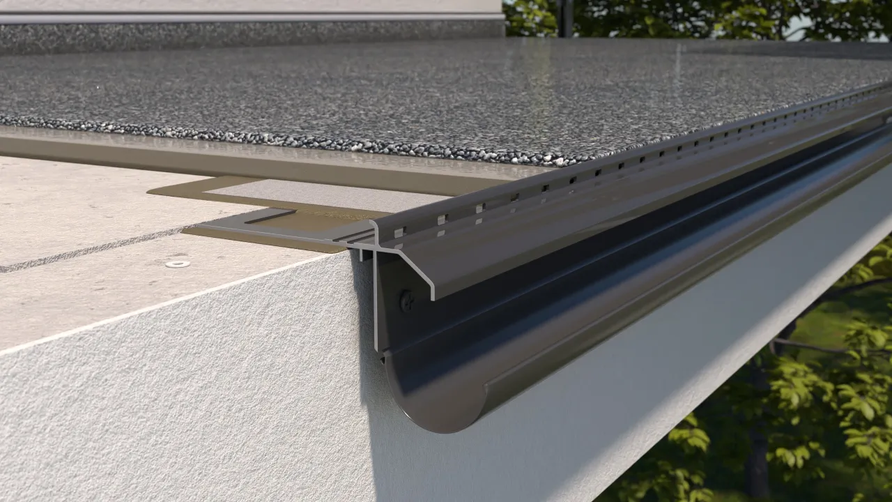 Pełna kompatybilność profilu okapowego K20R z systemem rynnowym R50, umożliwiająca łatwy montaż rynien aluminiowych.